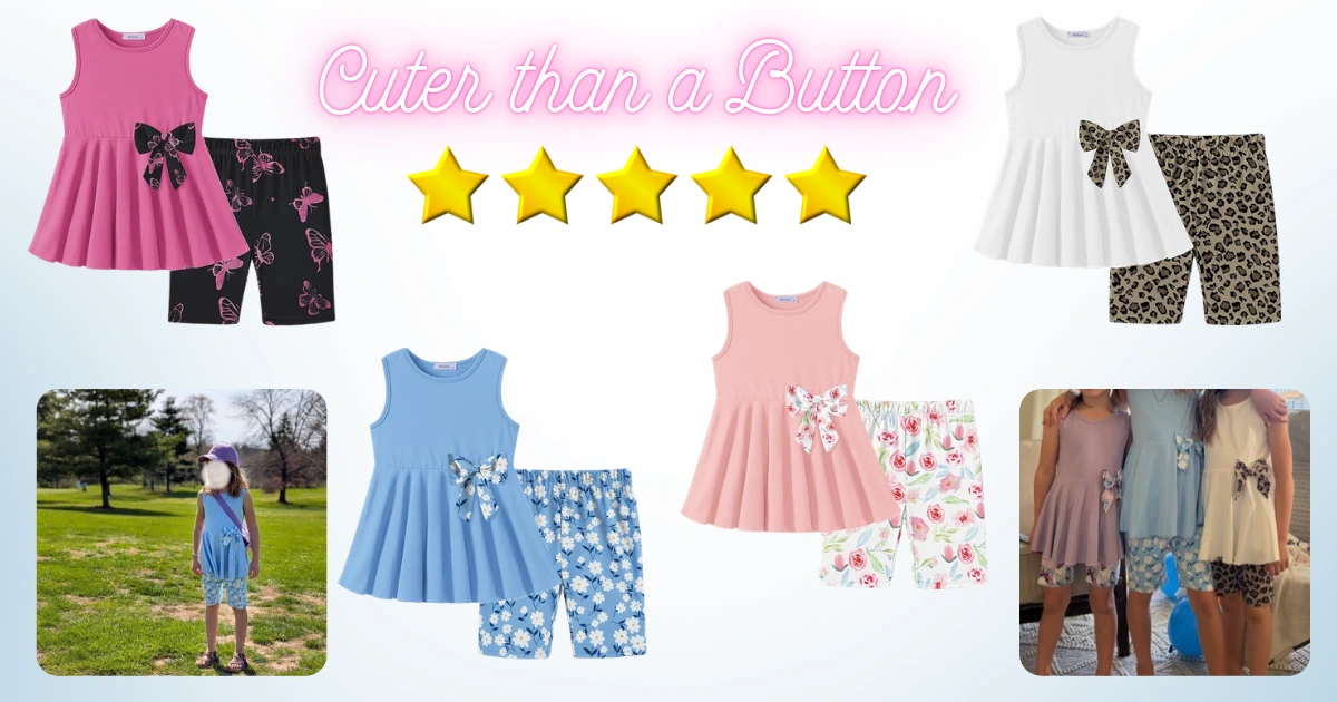 These outfits are made from a cotton blend with just enough spandex to be super soft and lightweight. My favorite part? When the girls spin, the top flares out like a "spinny skirt" while keeping them fully covered for playtime. They wash perfectly and look "so stinking cute" on active kids.